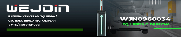 WEJOIN WJCB120VIL34LED - Barrera Vehicular Izquierda con Led / Alto flujo / Motor 24 VDC / Brazo Rectangular de 4 Metros / Velocidad 3 Segundos / Dirección Ajustable